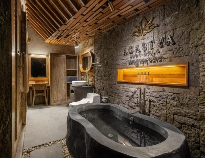Les hébergements du Agastya Ubud Villa Lodge sont pensés comme de véritables cocons tropicaux. Chaque villa dispose d’une terrasse privée, d’une climatisation, d’une télévision à écran plat et d’une connexion Wi-Fi gratuite. Les salles de bains privatives, lumineuses et modernes, comprennent un bidet, des articles de toilette naturels, un sèche-cheveux et une baignoire spa — parfaite pour se détendre après une journée d’exploration.
