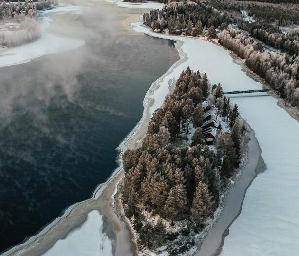Situé sur la pittoresque île privée de Vartiosaari à Rovaniemi, le Aino Lodge est un hôtel-boutique réservé aux adultes, offrant un séjour paisible et raffiné. L’établissement se distingue par son emplacement unique sur une île accessible par un pont suspendu au-dessus de la rivière Kemijoki, à seulement 10 minutes du centre-ville de Rovaniemi et du célèbre Village du Père Noël. Ce cadre privilégié garantit intimité, tranquillité et immersion totale dans la beauté naturelle de la Laponie finlandaise.