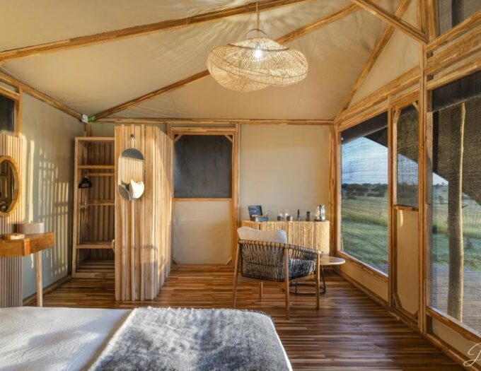 L’architecture de l’Anantya Serengeti Lodge s’inscrit dans la tradition des camps de safari épurés, privilégiant l’intégration et le respect de la nature. Chaque structure est pensée pour offrir un confort de base solide et discret, sans jamais dénaturer le sens du lieu. Les tentes ou bungalows ouvrent directement sur le jardin, offrant une vue immédiate sur la brousse environnante, où le regard se perd vers l’horizon.