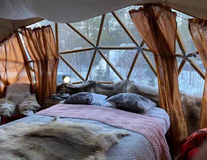 Chaque détail du lodge est pensé pour offrir une expérience mémorable, des matériaux naturels utilisés dans les tentes à la conception de l’espace bien-être, en passant par les vues panoramiques sur la forêt et la possibilité de partager ce moment avec des animaux de compagnie. Le Aurora Igloo Lodge incarne l’esprit de la Laponie : nature sauvage, confort et sérénité.
