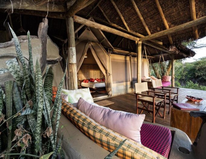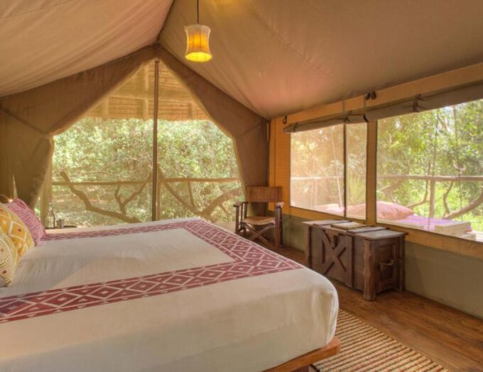 Le lodge conjugue confort moderne et atmosphère authentique. Les tentes et chambres sont conçues pour maximiser la lumière naturelle et offrir des vues panoramiques sur la savane et les rivières environnantes. Chaque hébergement dispose d’une salle de bains privative avec douche, d’articles de toilette gratuits et d’une décoration chaleureuse et épurée, qui reflète l’esprit de la région. Les terrasses privatives ou les espaces extérieurs permettent d’apprécier pleinement les levers et couchers de soleil, tout en observant la faune locale dans un cadre paisible.