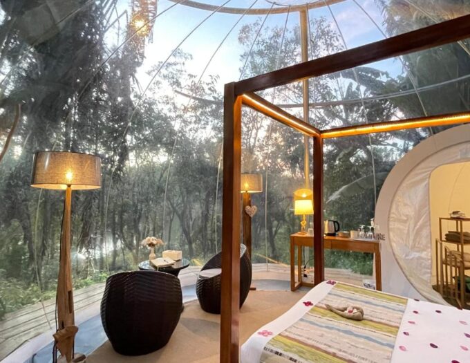 L’architecture du Bubble Lodge est sa signature. Les chambres en forme de bulles transparentes offrent un design unique, permettant une vue panoramique complète sur les environs. Ce concept, pensé pour l’évasion, permet d’admirer les champs de thé, le lac et, la nuit, le ciel étoilé depuis le confort de son lit. C’est une expérience d’une authenticité rare, où le mur entre l’intérieur et la nature s’efface.