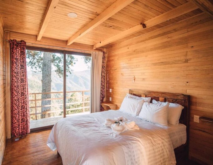 L’architecture du Cabañas Rancho Viejo rend hommage au style montagnard traditionnel, privilégiant le bois et la pierre pour se fondre dans la forêt de pins et de sapins. Les cabanes sont disposées de manière à préserver l’intimité de chacun, tout en maximisant les points de vue sur l’horizon infini des montagnes d’Oaxaca. Le matin, la lumière perce à travers la brume, créant une atmosphère mystique qui est la signature visuelle de la région.