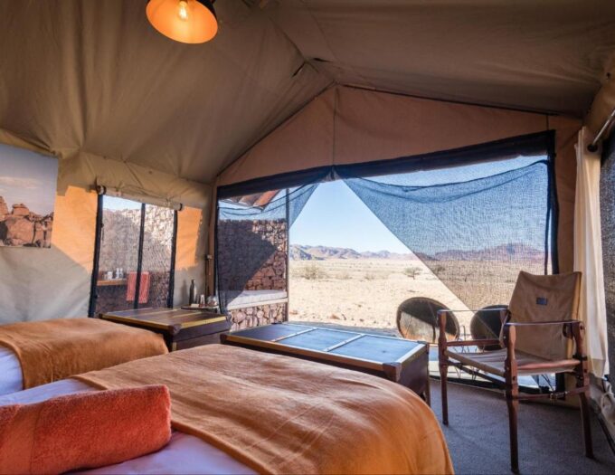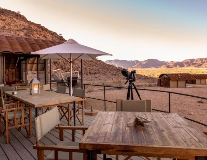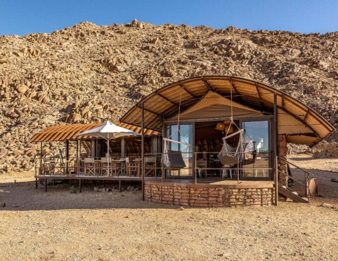 Au cœur de la région désertique de Hammerstein, Camp Sossus Lodge offre une immersion rare dans l’un des paysages les plus emblématiques de Namibie. Ici, le désert se déploie dans toute son amplitude, avec ses vastes étendues minérales, ses montagnes sculptées par le vent et ses horizons ouverts qui invitent naturellement à la contemplation. Le camp se fond dans cette immensité, avec une architecture simple, inspirée par les matériaux naturels et les teintes chaudes du Namib. Dès l’arrivée, le silence puissant du désert enveloppe le voyageur et donne au séjour un rythme différent, plus lent, plus attentif, où chaque détail prend une dimension nouvelle.