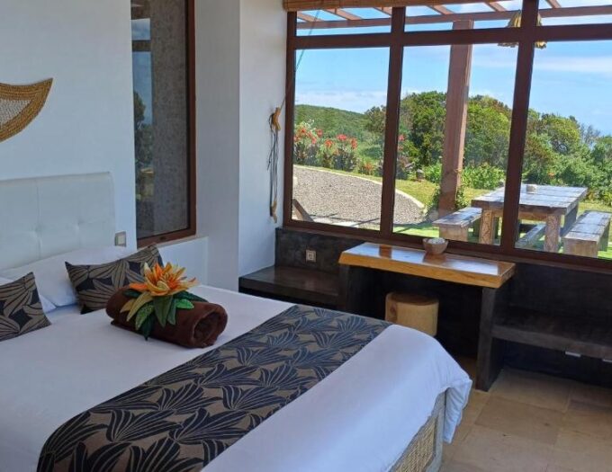 La lumière constante, le calme environnant et les paysages insulaires en font un lieu propice aux moments suspendus. On y retrouve une sensation rare d’espace, de temps ralenti et d’harmonie avec la nature environnante. C’est un lodge qui appelle à la déconnexion, à la contemplation et aux instants simples.