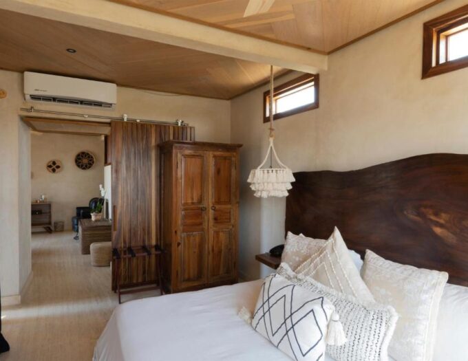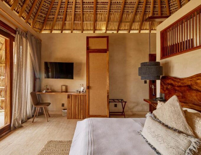 Les hébergements sont conçus comme des havres de confort absolu et d’intimité. Chaque chambre est un cocon climatisé, essentiel sous le soleil ardent de Puerto Escondido, où chaque détail a été pensé pour le bien-être. Les salles de bains privatives, spacieuses et modernes, sont équipées de peignoirs moelleux, invitant à prolonger les moments de détente après une douche rafraîchissante. Le véritable luxe réside dans l’ouverture sur l’extérieur : les balcons privés offrent des vues spectaculaires sur la mer ou les jardins, transformant chaque réveil en une séquence de contemplation. Pour les moments de repos connectés, des services de streaming sont à disposition, permettant de se divertir tout en restant enveloppé dans la douceur du lieu.