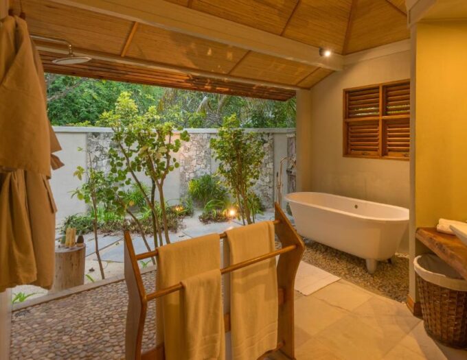 Sur Denis Island, chaque cottage ou villa est une invitation à la déconnexion. Nichés au bord de la mer, ils offrent une plage privée, une terrasse meublée et une salle de bains à ciel ouvert, entourée de verdure et de senteurs d’hibiscus. L’espace intérieur se veut à la fois spacieux et intime, mêlant bois clair, tissus naturels et mobilier inspiré de l’artisanat seychellois.