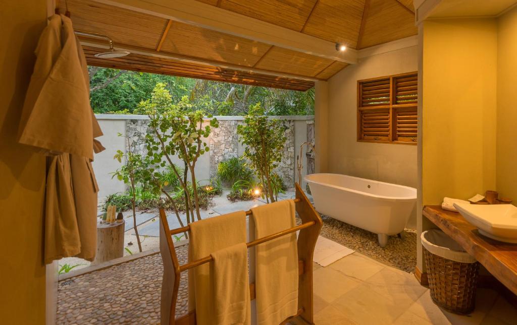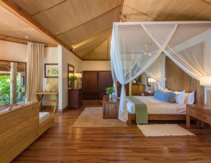 Certaines villas disposent de banquettes-lits face à l’océan, parfaites pour contempler le lever du soleil ou écouter le murmure des vagues à la tombée du jour. Rien ne trouble le calme, sinon le chant des oiseaux marins ou le frémissement des palmes.