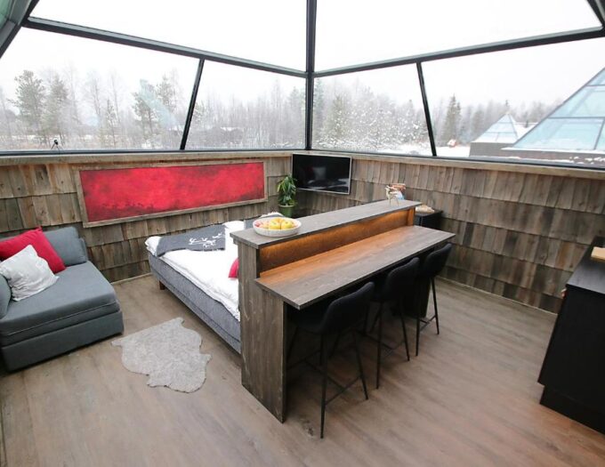 Le Elves Village Lodge bénéficie d’un emplacement stratégique, entouré de paysages pittoresques de Laponie. Les hôtes peuvent profiter d’un jardin luxuriant, d’une plage privée et d’espaces extérieurs conçus pour la détente. Chaque hébergement est pensé pour offrir une vue sur la nature et un accès facile aux activités de plein air. La région est particulièrement prisée pour la randonnée, le ski et les excursions en nature, offrant aux visiteurs une immersion totale dans les paysages lapons. Pour ceux qui souhaitent se détendre après une journée d’aventures, le lodge propose des espaces communs conviviaux ainsi qu’une terrasse idéale pour profiter du calme et de la beauté environnante.