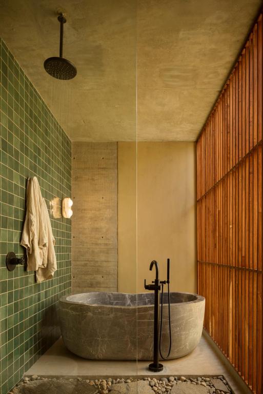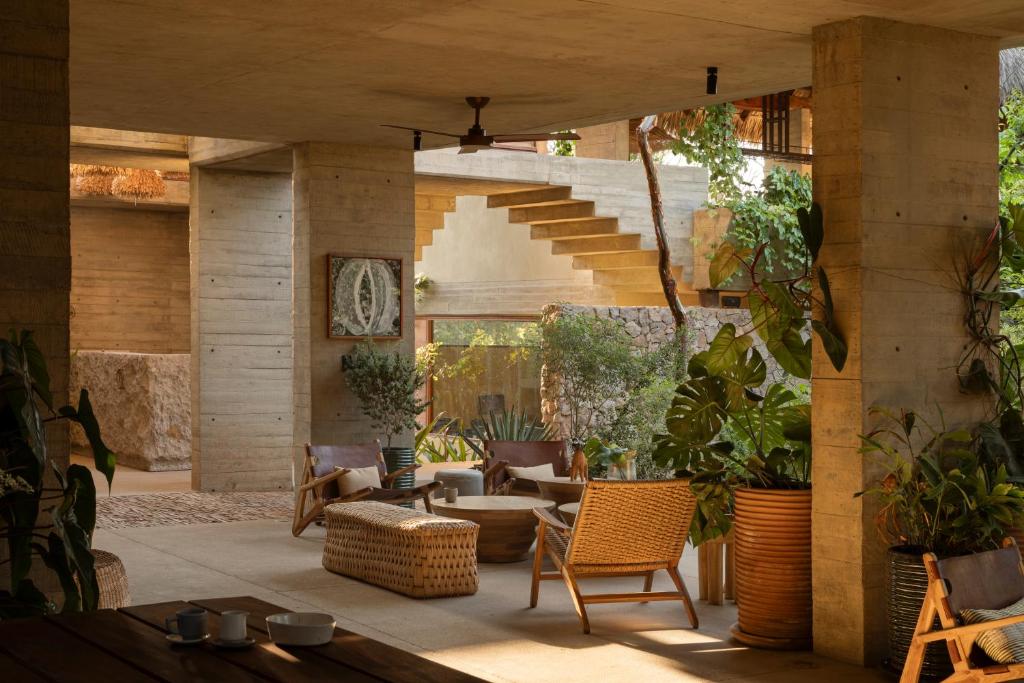 L’architecture de l’Ennea Lodge est une prouesse de design minimaliste. Utilisant des matériaux bruts tels que le béton brossé, le bois local et la pierre, les structures s’intègrent au paysage avec une audace tranquille. Les espaces sont conçus pour être poreux, laissant la brise marine et la lumière tropicale sculpter l’atmosphère tout au long de la journée. Cette conception permet de transformer chaque recoin de l’hôtel en un cadre vivant pour la contemplation.