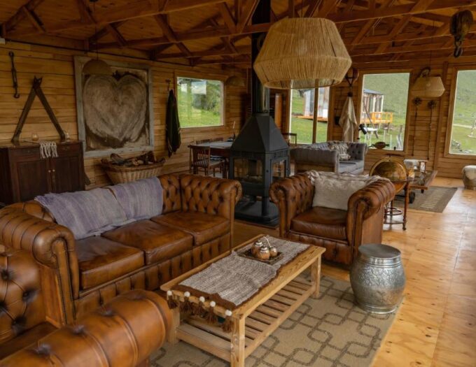 Des espaces authentiques, pensés pour la déconnexion et l’intimité L’esthétique de l’Estancia Bonanza Patagonian Lodge adopte les codes des demeures pionnières de Patagonie : du bois massif, des textiles chaleureux et une simplicité élégante qui laisse toute la place au spectacle extérieur.