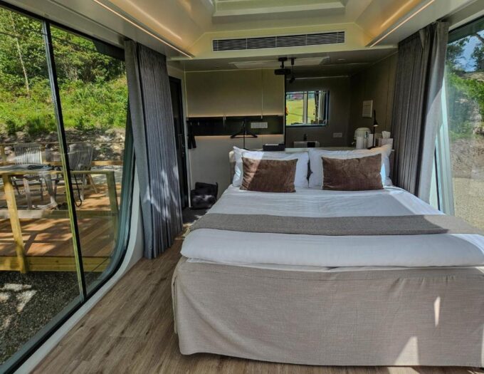 Chaque capsule est équipée de la climatisation, d’une connexion Wi-Fi gratuite, d’un lit confortable, de rangements pratiques et d’une grande baie vitrée qui inonde l’espace de lumière naturelle. Cette configuration permet aux voyageurs de vivre une immersion totale dans la nature tout en profitant d’un cocon chaleureux et douillet.
