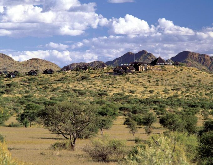 Situé à une trentaine de kilomètres de Windhoek, Gocheganas Lodge s’établit sur des hauteurs où l’horizon s’étire à perte de vue. Le relief ondulant, la végétation semi-aride et la lumière caractéristique de la région composent un décor apaisant où la nature occupe toute la place. Le lodge profite pleinement de cette situation privilégiée en offrant une immersion douce dans l’environnement namibien. Le calme, la clarté du ciel et la sensation d’espace deviennent les éléments centraux de l’expérience, invitant les voyageurs à ralentir et à savourer un séjour où la nature guide chaque instant.