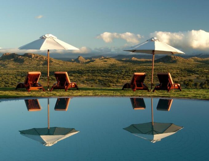 Le lodge possède une piscine extérieure qui s’ouvre largement sur les collines. Nager face au relief namibien ou se reposer sur la terrasse offre une parenthèse où la notion de temps semble s’effacer. La salle de sport complète cette expérience en proposant un espace lumineux, conçu pour maintenir une routine active dans un environnement inspirant. La douceur du climat et la présence constante de la nature rendent chaque activité plus apaisante. Gocheganas Lodge s’impose comme un lieu où l’équilibre entre détente et mouvement se crée naturellement.