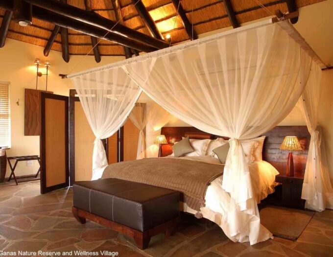 Séjourner à Gocheganas Lodge, c’est s’immerger dans un paysage où la lumière, la terre et le ciel composent un tableau vivant. Le lieu permet de comprendre la beauté singulière de la Namibie intérieure, loin des dunes et des côtes spectaculaires, mais riche d’une atmosphère unique. Chaque lever de soleil, chaque fin de journée, chaque regard vers l’horizon rappelle la force des paysages namibiens. Le lodge offre une expérience complète, où confort, nature et sérénité se rejoignent pour créer une escapade authentique.