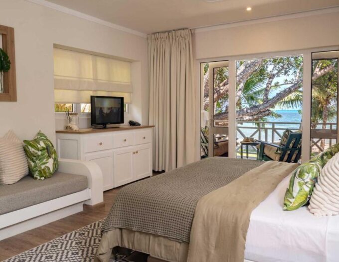 Les chambres de l’Indian Ocean Lodge ont été conçues pour offrir confort et praticité. Spacieuses et modernes, elles disposent d’un balcon privatif offrant une vue sur la mer ou sur le jardin tropical, permettant aux hôtes de profiter de la douceur des Seychelles dès le réveil. Chaque chambre est équipée de la climatisation, d’une télévision, d’un réfrigérateur et d’une machine à café, garantissant un séjour agréable et relaxant.