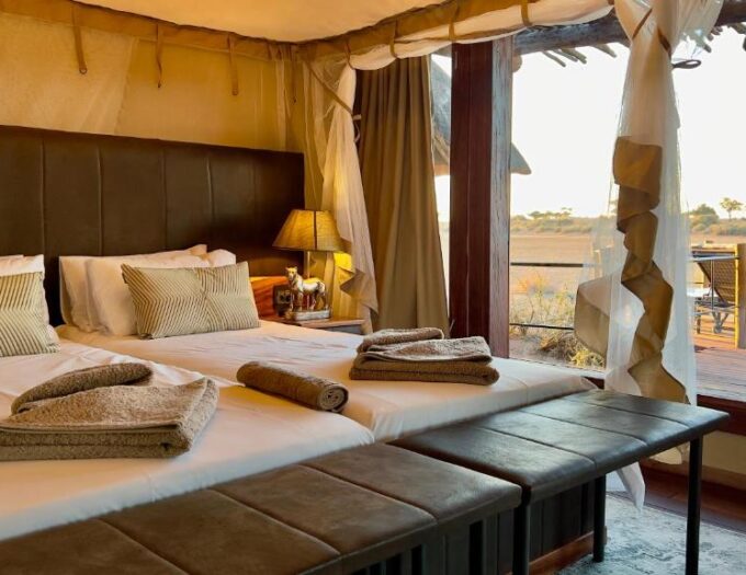 Le Kalahari Red Dunes Lodge tire son nom de son environnement direct : les dunes rouges emblématiques qui ondulent autour du site. À l’arrivée, la première impression est celle d’un espace grand ouvert, où le regard porte loin, jusqu’à la ligne d’horizon. L’architecture du lodge joue avec ce décor, en utilisant des matériaux naturels et des formes simples qui s’intègrent harmonieusement au paysage. La lumière, changeante selon les heures, transforme les dunes en un théâtre d’ombres et de nuances, invitant à la contemplation.