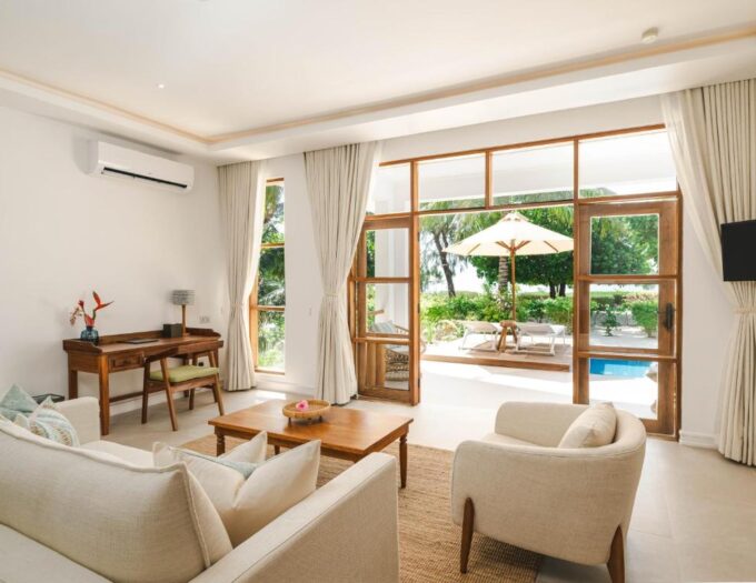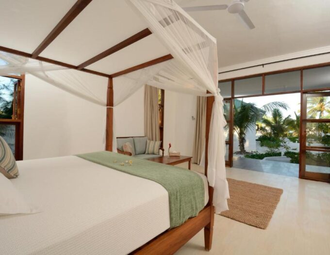 L’architecture du Kisiwa Lodge est un mariage réussi entre le mobilier de Zanzibar et les intérieurs modernes, créant une atmosphère à la fois riche et apaisante. Les villas sont élégamment décorées, offrant des espaces de vie pensés pour la sérénité. Chaque villa dispose d’une terrasse privée et d’un coin salon, des lieux qui invitent à la lenteur et à la contemplation de la nature environnante.