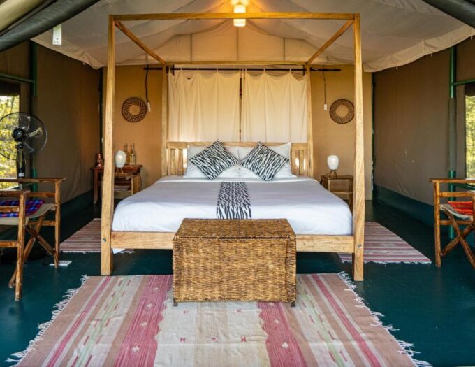 Les chambres du Kobe Mara Lodge sont conçues pour offrir un séjour confortable tout en restant en harmonie avec l’environnement. Certaines disposent d’une cuisine équipée d’un four, permettant aux invités de préparer des repas simples et chaleureux. Chaque logement offre un accès direct au jardin et une vue sur la nature, renforçant le sentiment de proximité avec la savane. L’atmosphère des chambres, lumineuse et intime, est accentuée par des couleurs douces et des matériaux naturels, créant un cadre apaisant après une journée de safari ou de découverte.