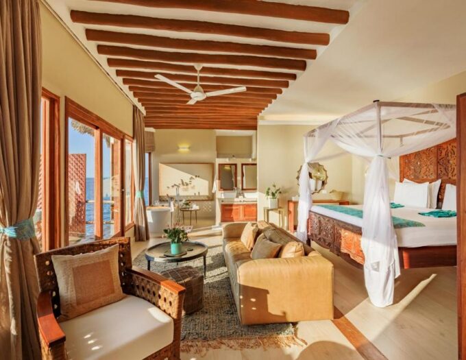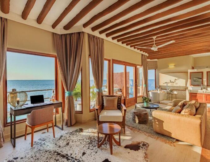 Le restaurant, grâce à son emplacement unique, transforme chaque repas en un événement. Il sert une sélection de plats locaux et internationaux, célébrant l’authenticité des saveurs de Zanzibar tout en proposant des classiques revisités. La vue imprenable sur la baie amplifie le plaisir de la table, faisant du dîner un moment de lumière et de beauté mémorable.