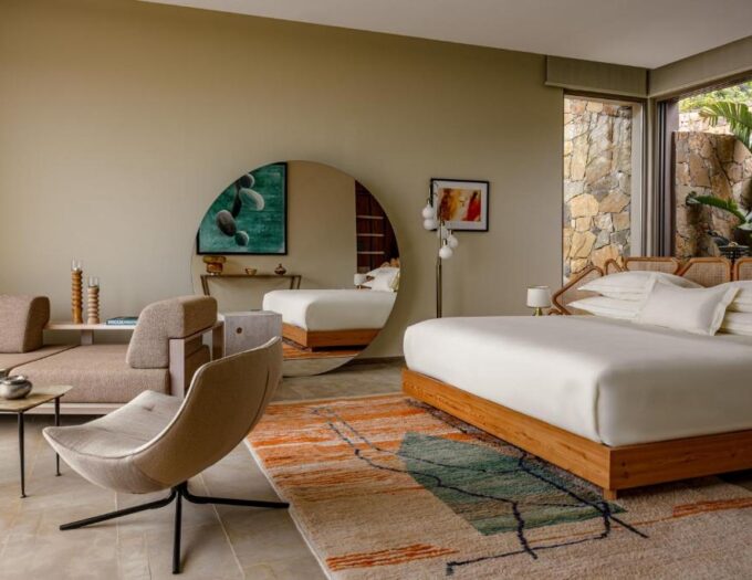 La Fiermontina Ocean Lodge privilégie un style qui s’intègre subtilement au paysage : lignes épurées, teintes minérales, espaces respirants. Les matériaux naturels, les patios ombragés et les circulations fluides donnent au lieu l’allure d’une maison ouverte, conçue pour accueillir la lumière sans perdre l’intimité. Chaque hébergement, climatisé et doté d’une salle de bains privative, se distingue par sa sobriété élégante. Les patios privés invitent à prendre un café au frais, tandis que certaines suites offrent une cuisine équipée, permettant de vivre l’espace comme une véritable résidence. Rien n’est ostentatoire : l’ambiance repose sur une harmonie douce, où chaque détail contribue à une sensation de confort discret.