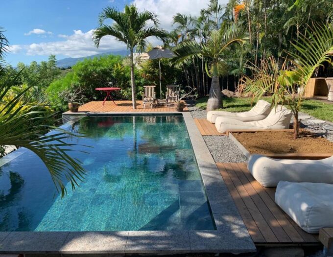 Pensée comme une parenthèse à taille humaine, La Kaz Nana Sakifo Lodge privilégie l’expérience avant tout. Dès votre arrivée, vous êtes enveloppé par la végétation tropicale, les couleurs minérales et la lumière qui se reflète sur l’océan. La maison d’hôtes se distingue par son architecture simple et élégante, ainsi que par une atmosphère chaleureuse qui rappelle celle d’une villa privée. Ce n’est pas seulement un hébergement : c’est un point d’ancrage pour vivre pleinement les paysages et les sensations qu’offre la côte ouest réunionnaise.