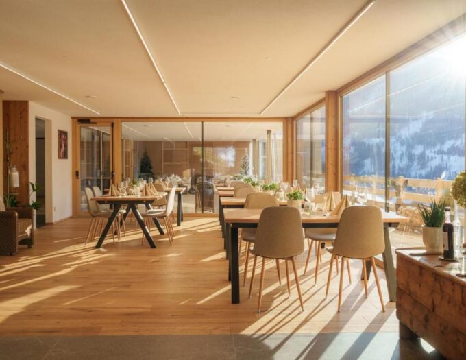 Le restaurant du lodge prolonge cette philosophie du terroir en proposant une cuisine régionale généreuse, accompagnée de vins du Haut-Adige.