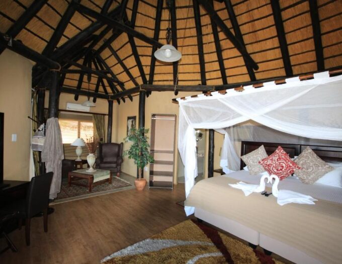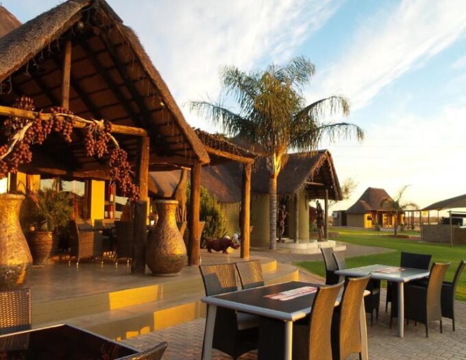 Le restaurant du lodge propose une cuisine inspirée par les produits locaux et par les traditions culinaires namibiennes. Le petit-déjeuner, le déjeuner et le dîner sont servis sous forme de buffet, offrant un choix varié et une ambiance conviviale. Les plats de gibier, souvent préparés avec soin, permettent de découvrir des saveurs typiques de la région. Le lodge dispose également d’une boutique de souvenirs, où il est possible de rapporter des objets artisanaux ou des créations locales.