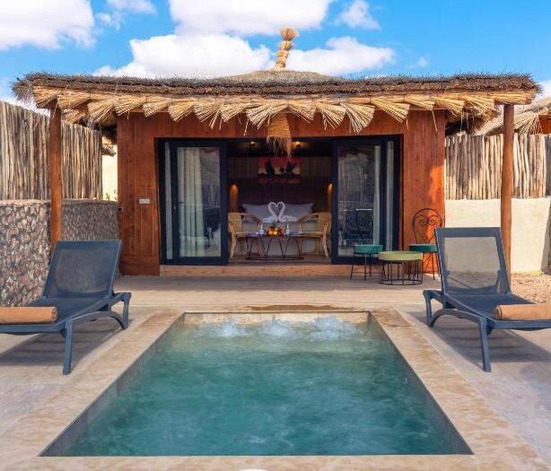 Toutes les chambres du Bédouin Lodge sont climatisées et dotées d’une salle de bains privative entièrement équipée, incluant douche et articles de toilette gratuits. Les chambres sont pensées pour allier confort et authenticité, avec des matériaux naturels et des touches de décoration locale. Certaines offrent des balcons ou terrasses donnant sur la piscine ou sur les étendues désertiques, parfaits pour admirer le coucher de soleil.
