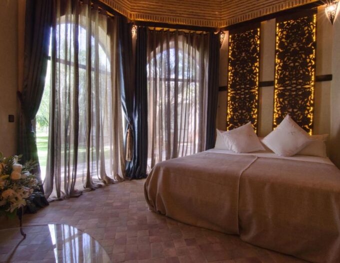Les hébergements du Lodge K sont pensés pour offrir un confort complet tout en préservant l’intimité et la tranquillité de chaque invité. Les chambres disposent de la climatisation, d’une télévision à écran plat, d’un minibar et d’un lecteur DVD, créant un espace propice au repos. Le réfrigérateur intégré et les équipements modernes assurent une autonomie agréable, tandis que les vues sur le jardin renforcent le sentiment de connexion avec la nature. Les salles de bains privatives, dotées d’une baignoire, d’un peignoir et d’un sèche-cheveux, prolongent cette atmosphère de bien-être. La douceur des matériaux et la lumière filtrée participent à une expérience apaisante, idéale pour se ressourcer après une journée passée à explorer Marrakech.