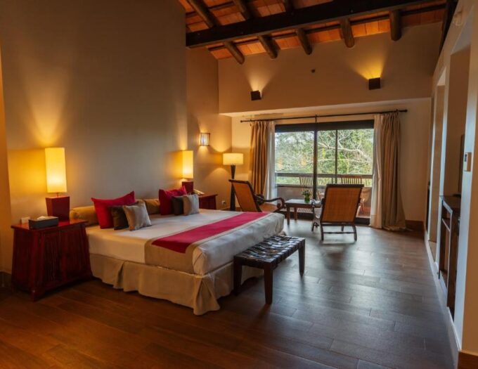 Les logements disposent d’une salle de bains luxueuse avec baignoire et d’une télévision par câble. Pour une immersion totale, certaines suites bénéficient d’un grand balcon privé offrant une vue imprenable sur la jungle environnante. La connexion Wi-Fi gratuite assure un confort moderne, tandis que la lumière douce qui filtre à travers la végétation renforce la dimension contemplative du séjour.