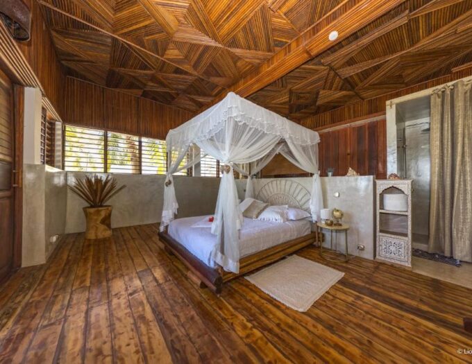 Situé à Antafondro, sur la célèbre île aux parfums de Nosy Be, le Madabay’s Lodge, vue mer intimité, est une adresse qui invite à une évasion romantique et intime face à l’océan Indien. Ce Lodge est une célébration de la nature tropicale, offrant des vues imprenables sur la mer depuis ses bungalows. L’ambiance y est celle d’un carnet de voyage qui valorise l’authenticité malgache, le silence réparateur et la lenteur des jours passés sous les tropiques. L’architecture simple et fonctionnelle est pensée pour maximiser la lumière et le contact avec l’horizon marin, créant un sentiment d’harmonie totale.