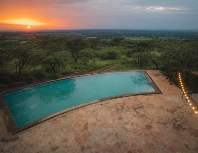 De retour au lodge, la piscine extérieure offre un moment de détente avec vue sur les collines environnantes. Les plus curieux pourront s’essayer aux fléchettes, explorer les sentiers alentours ou partager des moments avec l’équipe locale pour découvrir les traditions masaï.