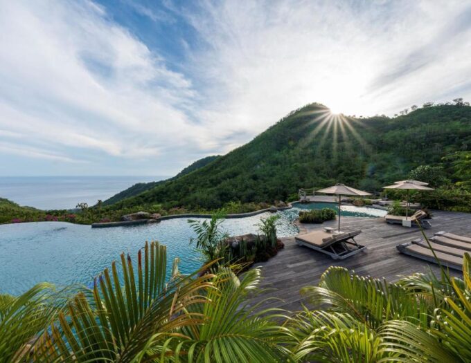 Au cœur du Mathis Lodge, la piscine à débordement semble flotter au-dessus de la vallée, offrant un spectacle infini de bleus et de verts. Les journées s’écoulent au rythme du soleil : petit-déjeuner sur la terrasse, lecture à l’ombre, ou massage au spa face à la mer.