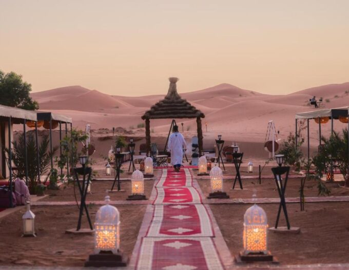 Ce camp de luxe fait de l’authenticité une promesse. Bien plus qu’un lieu d’hébergement, il propose une immersion totale dans l’esprit nomade marocain, en associant tradition, confort moderne et poésie du désert. On vient pour vivre, ressentir, écouter, observer — et repartir transformé.