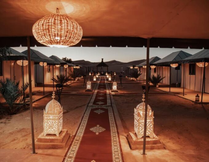 Ce camp de luxe fait de l’authenticité une promesse. Bien plus qu’un lieu d’hébergement, il propose une immersion totale dans l’esprit nomade marocain, en associant tradition, confort moderne et poésie du désert. On vient pour vivre, ressentir, écouter, observer — et repartir transformé.