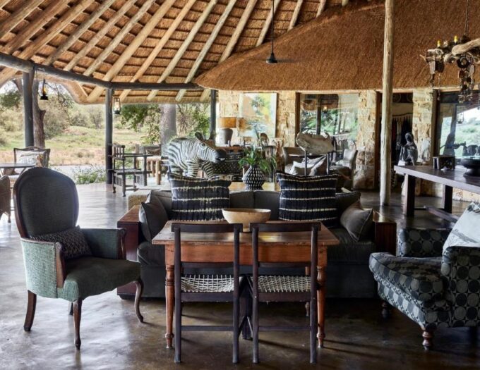 Les hébergements du lodge combinent élégance traditionnelle et touches contemporaines. Les lodges spacieux, pourvus de toits de chaume, de climatisation et de grandes terrasses en bois, offrent des vues panoramiques sur la savane environnante. Chaque suite dispose d’un salon, d’une salle de bains avec baignoire et d’une décoration soignée, mélangeant matériaux naturels et design subtil. L’atmosphère est intime et chaleureuse, permettant aux hôtes de se détendre pleinement tout en restant connectés avec l’environnement. Les parties communes, incluant une bibliothèque et une piscine extérieure, offrent des moments de convivialité et de calme, parfaits pour se ressourcer après une matinée de safari.