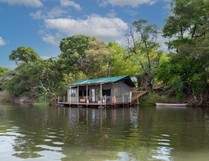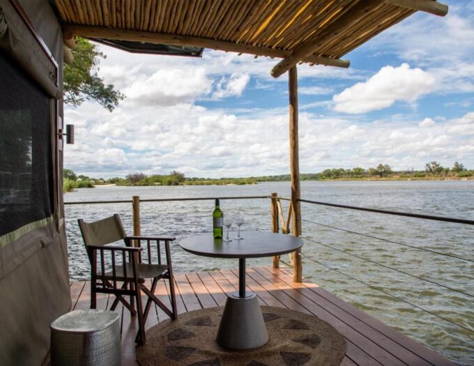 Le Ndhovu Safari Lodge propose des tentes équipées de vérandas privées qui donnent directement sur le fleuve. Chaque hébergement est conçu comme une parenthèse douce, où l’on profite du paysage sans barrière, avec la sensation d’être au cœur de la nature tout en restant confortablement installé. Les tentes disposent de parquet, d’une armoire, de moustiquaires et d’une salle de bains privative, un équilibre agréable entre esprit safari et modernité.