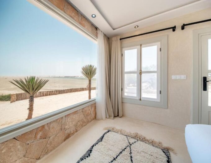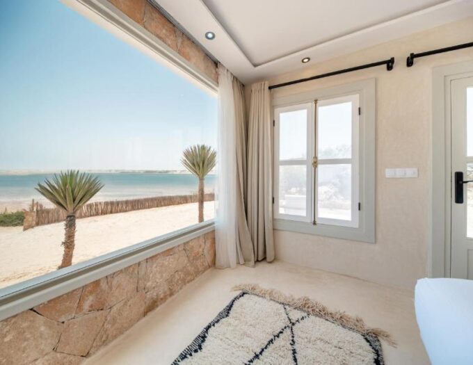À quelques pas de la plage Trouke 25, New Spirit Dakhla Lodge s’érige comme un havre où la nature et le confort moderne se rencontrent avec harmonie. La lagune de Dakhla, vaste et tranquille, s’étire devant le lodge, offrant des reflets changeants selon la lumière du jour. L’endroit dégage une atmosphère paisible, propice à la contemplation et au ressourcement. Le sable, le vent et la lumière jouent un rôle central dans la perception de l’espace, guidant le séjour vers une immersion totale dans le paysage. Ici, la nature impose sa présence sans jamais être envahissante, et chaque moment devient une occasion d’observer et de ressentir le décor environnant.