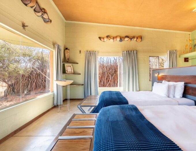 La faune locale est régulièrement observable dans les environs du lodge. Les reliefs et les zones ouvertes attirent de nombreux animaux, et les voyageurs les plus attentifs remarquent souvent la présence d’antilopes, d’oiseaux et parfois de prédateurs au loin. Le lieu se prête parfaitement à l’observation lente et silencieuse, sans agitation.