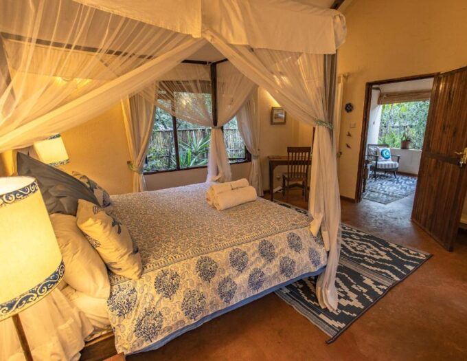 Chaque chambre dispose de commodités modernes tout en conservant une touche authentique et accueillante. Les cottages indépendants permettent aux voyageurs de profiter d’un maximum d’intimité, avec un accès direct au jardin et aux espaces extérieurs du lodge. Les terrasses et balcons offrent des vues sur la végétation environnante, propices à la contemplation et à la détente après une journée d’exploration urbaine ou de safari proche de Nairobi.