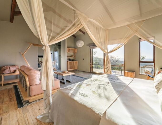 Le lodge propose des hébergements variés, allant des chambres standard avec terrasse privée aux suites de brousse de luxe avec cheminée à foyer ouvert, ainsi qu’aux villas lune de miel avec petite piscine privée. Chaque suite offre un confort moderne avec climatisation, mobilier élégant et vues spectaculaires sur la réserve. Les villas et suites sont conçues pour offrir intimité, sérénité et proximité avec la nature, permettant aux visiteurs de profiter pleinement du cadre sauvage dans une atmosphère luxueuse. Les salles de bains sont équipées d’articles de toilette haut de gamme et de commodités adaptées à un séjour raffiné.