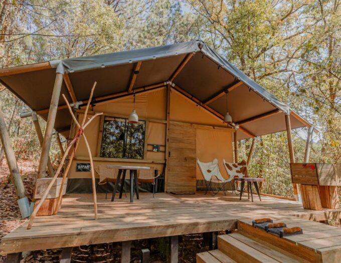 L’architecture du Rodavento est une prouesse de design organique. Conçu pour s’effacer devant la majesté de la nature, l’hôtel se compose de suites indépendantes aux toits de toile tendue, rappelant les tentes de luxe, mais construites avec la solidité et le raffinement de matériaux nobles comme le bois et la pierre. Cette structure unique permet une immersion sensorielle totale : on vit au rythme de la forêt, tout en étant protégé par un cocon de luxe. La conception privilégie de larges baies vitrées et des terrasses privées qui capturent la lumière changeante du jour, transformant les intérieurs en véritables tableaux vivants.