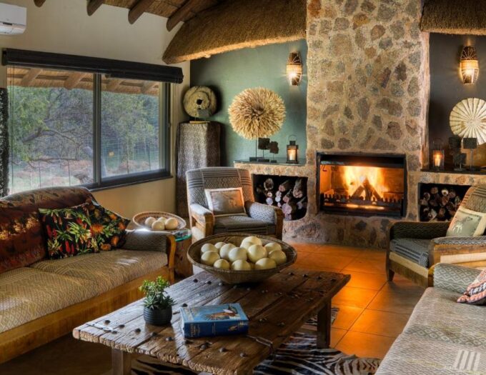 La philosophie du Sable Ranch Bush Lodge repose sur une expérience authentique, confortable et ressourçante. Les espaces communs — notamment le jardin et la terrasse — sont conçus pour profiter pleinement du calme et de la beauté du bush sud-africain. Le bar extérieur et le coin feu ajoutent une atmosphère conviviale et chaleureuse aux soirées passées sur place.