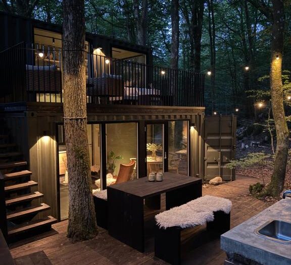 À l’intérieur, la décoration scandinave minimaliste mêle bois clair, teintes naturelles et mobilier design pour créer une atmosphère apaisante. Chaque logement dispose :