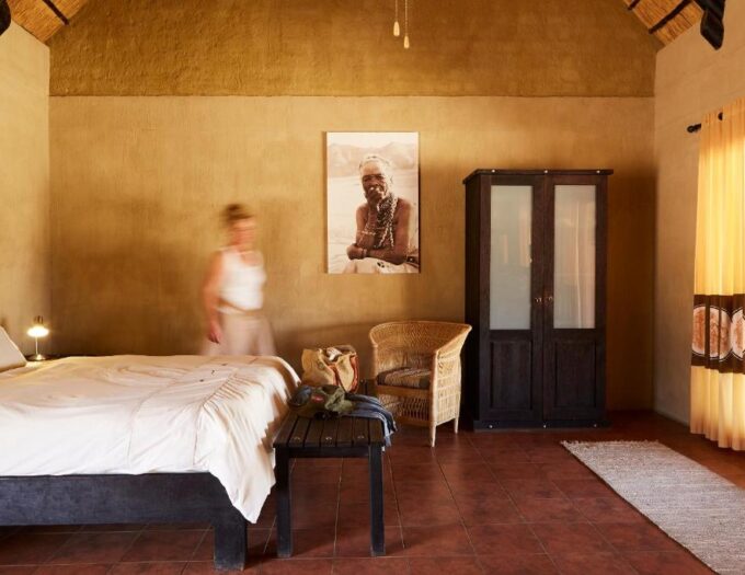 Les chambres du lodge sont décorées dans un style africain, avec des matériaux naturels et une atmosphère douce. Elles offrent un confort sobre, fidèle à l’authenticité des hébergements du désert. Les espaces sont climatisés, ce qui est indispensable dans cette région où les amplitudes thermiques sont marquées. Chaque chambre donne sur le jardin, ce qui garantit une sensation de calme et une vue vivante dès le réveil.