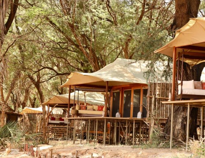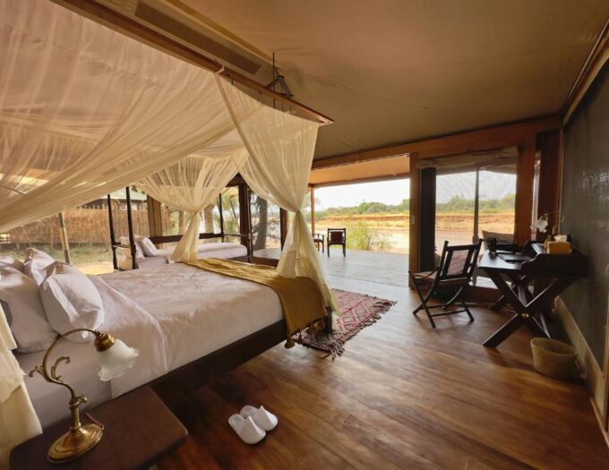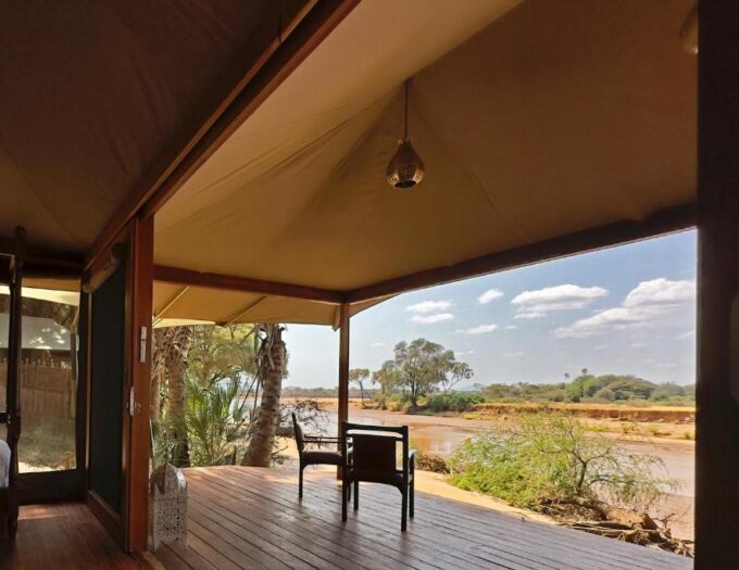Perché au sein de la réserve nationale de Buffalo Springs, le Soroi Larsens Camp Lodge offre une expérience unique pour les amoureux de la faune et de la nature sauvage. Ce camp de luxe se distingue par son emplacement privilégié en bordure d’un cours d’eau, offrant une vue spectaculaire sur la savane et la vie animale environnante. Ici, chaque instant devient une rencontre avec la nature, des troupeaux d’antilopes aux girafes qui s’aventurent près du camp, jusqu’aux oiseaux multicolores qui se posent sur les arbres environnants.