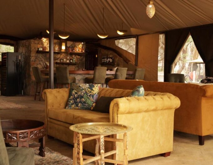 Le Soroi Larsens Camp Lodge propose des tentes de luxe conçues pour conjuguer confort moderne et immersion dans le cadre sauvage. Chaque tente dispose d’un coin salon, d’un service d’étage et d’une salle de bains privative, équipée de linge de maison, serviettes et articles de toilette. La décoration intérieure combine matériaux naturels et touches raffinées, créant une atmosphère chaleureuse tout en respectant l’esprit du safari africain. Certaines tentes s’ouvrent sur des terrasses offrant des vues panoramiques sur le cours d’eau, un lieu idéal pour observer les animaux au lever ou au coucher du soleil.