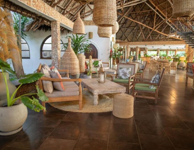 Le restaurant Clubhouse du resort propose une cuisine africaine et internationale, servie à la carte ou sous forme de buffet, mettant en valeur des produits frais et locaux. Les repas peuvent être dégustés à l’intérieur ou en extérieur, offrant une vue panoramique sur le Mida Creek et les couchers de soleil spectaculaires.