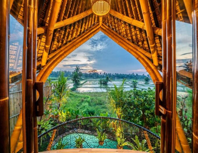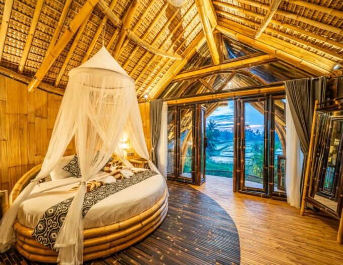 Idéal pour les couples, les voyageurs solo et les amateurs de slow travel, c’est un lieu où le temps s’étire doucement, entre les palmiers et les reflets de l’eau. On y vient pour se reposer, se reconnecter et repartir apaisé, le cœur plus léger. Une adresse qui porte bien son nom : une évasion royale, dans la simplicité du bambou et la lumière d’Ubud.